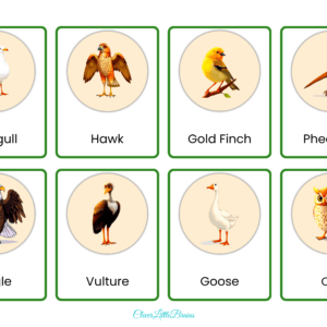 ✔ 32 Birds Flashcards – Featuring a variety of common and exotic birds.