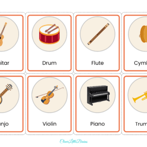 Introduce your child to the world of music with these Musical Instruments Flashcards! Featuring 24 different musical instruments, these printable flashcards help kids recognize instruments, learn their names, and develop an early appreciation for music.